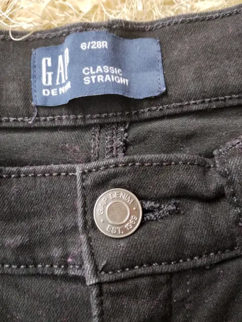 Jeans Gap Denim rectos tiro alto M. Jeans negros marca GapCorte recto tiro altoTalla S- M 28 regularUsados un par de veces sin ningún detalleColor al 💯👌 miden39 cm cintura, 46 cadera, 24 tiro, 1 metro largo