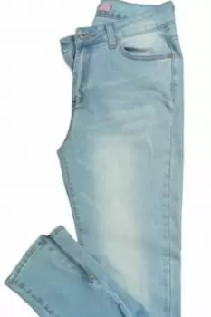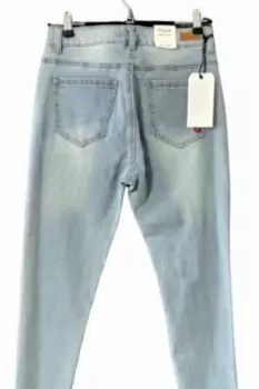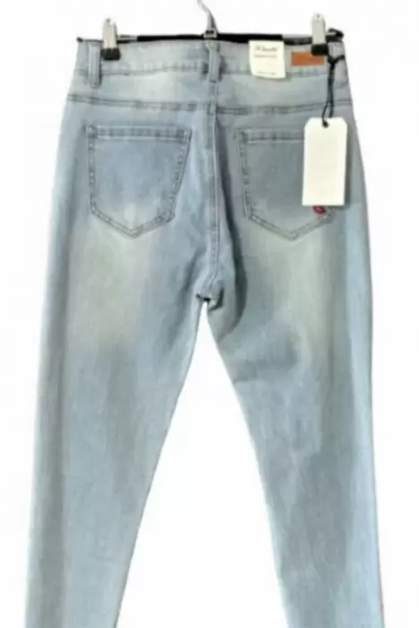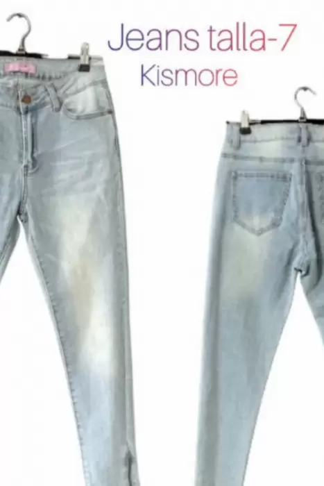 Jeans Kismore Talla-7. Jeans Strech a la cintura, deslavado talla-7 con bolsas traseras y cierres en costado de tobillos,