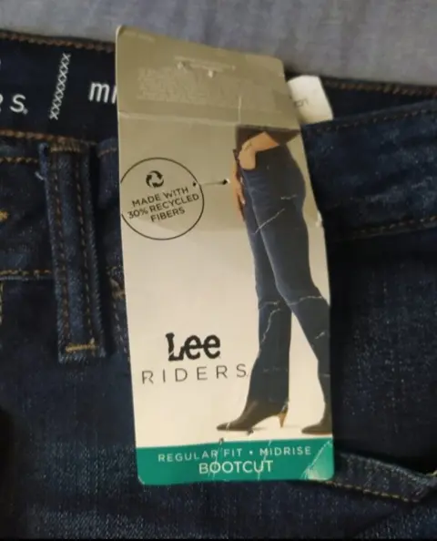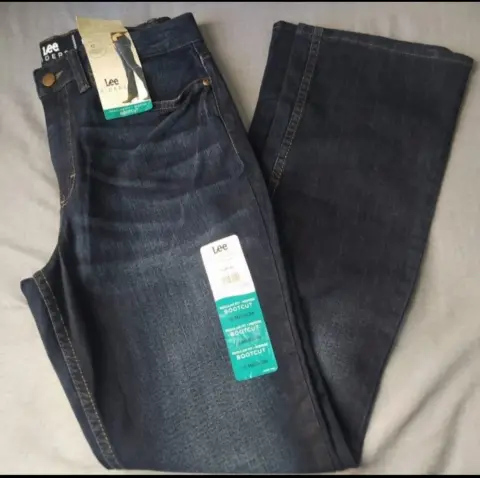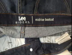 Jeans Marca Lee Riders de mezclilla suaveCorte bota es un poco acampanado69% Algodon30% Polyester1% Spandextalla Mediana 10 AmericanoTela de mezclilla muy suaveNuevo con etiquetamedidas en plano37 cm cintura44 cm zona de cadera28 cm tiro74 cm alto (del tiro a parte baja20 cm campana o ancho bota25 cm muslo