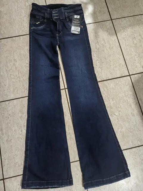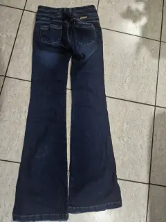 Jeans mezclilla. pantalon de mezclilla acampanado dice talla 9 pero viene reducido queda talla 5- 7