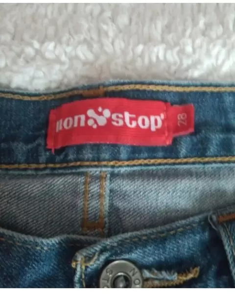Pantalón marca non stop talla 28 a la cadera, tiene una ligera mancha en la pierna derecha nada que afecte al uso, con botón y cierre funcional, la entre pierna no esta gastada