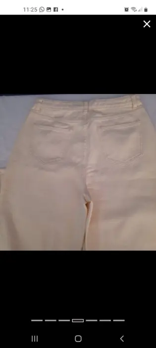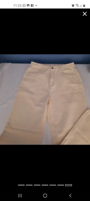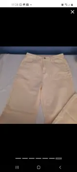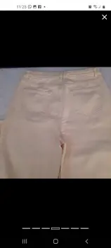 Tiro alto Talla L pierna recta y anchaContorno cintura 74cmCadera :100 cmLargo 103.5 cmColor beigeMezclilla
