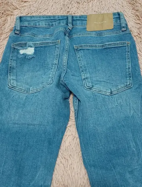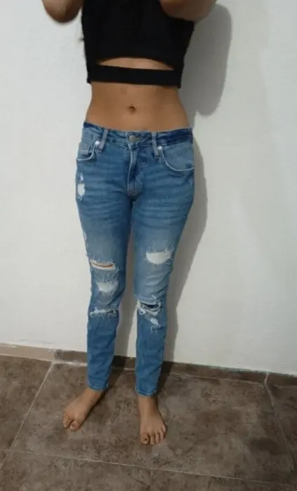 Jeans rasgados Bershka. Lindo jeans berhka, rasgado, hace bonita figura,está en buen estado, es recto pero queda justo de las pantorrillas, estira, las medidas están en las fotos, dice talla 28 pero queda amejor a 25-26