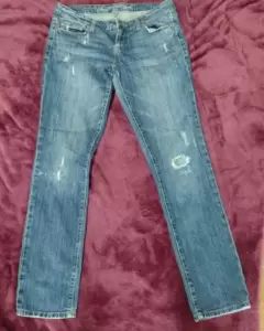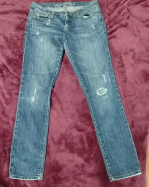 Jeans rectos rasgados. Jeans Para Mujer American Eagle Mom Jean Con Rasgados. Color azul cielo. Tiene solo como eetalle una pequeña manchita en lila(se aprecia en la última foro).