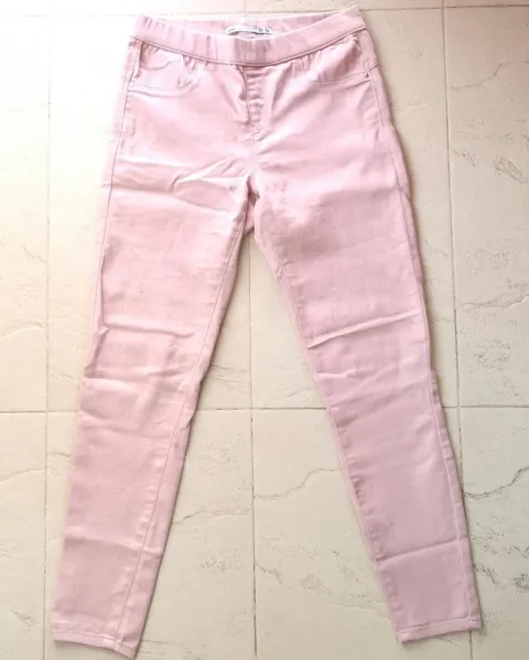 Jeans rosa talla 28. Suuuuuper stretch y cómodos 🙌🌸Súper combinables, es un rosa tenueEn perfecto estado, sin detallesSin cierre, es un elástico, como si fuera legginsNada se transparenta ni se nota💯👌Si tienes dudas con gusto te ayudo