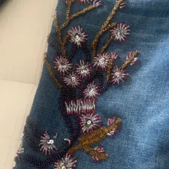 Divinos jeans corte recto con roturas en rodilla y hermoso detalle de bordado de delicada chaquira y canutilloSensacionales!!!!