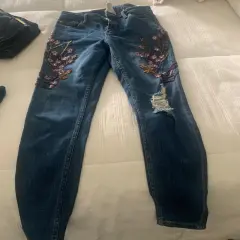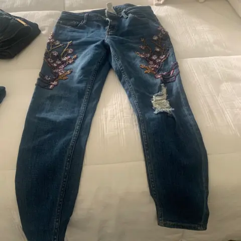 Jeans rotos y con piedreria. Divinos jeans corte recto con roturas en rodilla y hermoso detalle de bordado de delicada chaquira y canutilloSensacionales!!!!