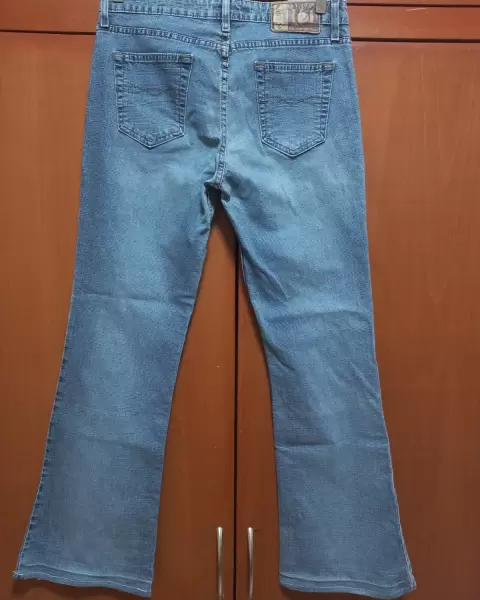 Jeans semiacampanados, corte clásico, marca l.e.i., talla 11.Ligero detalle, se le hizo ajuste del largo de bastilla.Medidas: cintura de lado a lado 39 cm, cadera 47 cm, largo de tiro 27 cm, y largo total 100 cm.