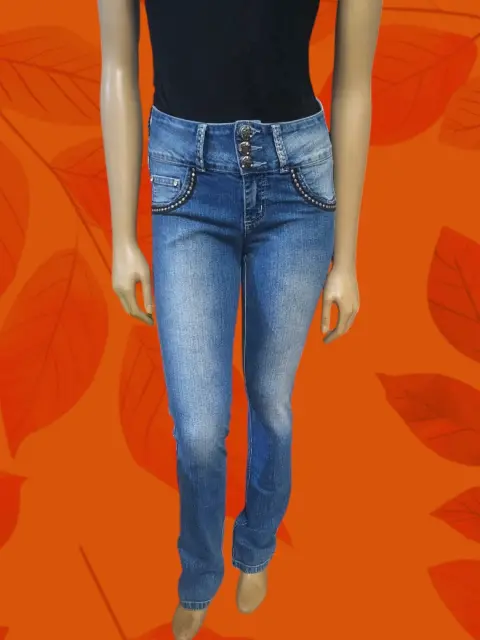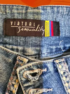 Jeans Skinny Virtual Sensuality. Jeans Skinny Virtual Sensuality, talla extra chica, color azul deslavado, estilo clasico con 5-bolsillos 2 de ellos Faux, cierre y 3-botones, detalles engravados, en frente y bolsillos traders, pretillas para cinturon, linea colombiana, Heche de algodon, miden 30cm de cintura, 42cm de cadera, 81cm de entrepierna con 106cm de largo de la cintura hacia abajo en buen estado cosmetico.