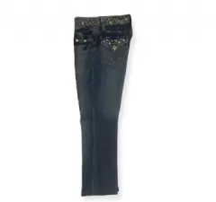 Jeans Strech con Pedreria Barbara. Marca: BarbaraTalla: SMedidas: 38 cm de Cintura, 98 cm de Largo, 26 cm de TiroColor: AzulMaterial: 98% Algodon 2% LicraCon pedreria