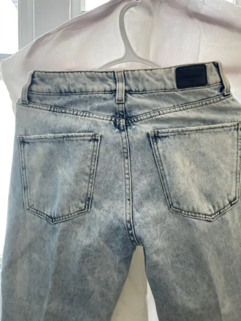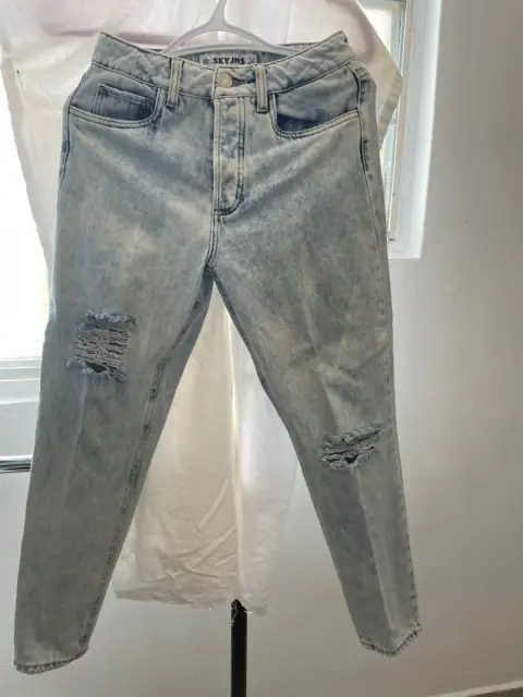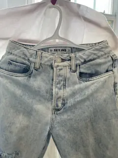 Moderno pantalón mezclilla azul claro SXY JNSPantalón mezclillaColor Azul claro Talla 24Material Mezclilla Estado Usado una vez Medidas en centímetros Cintura 36 cm Largo 90 cmCadera 43 cm Botones 4 No cierre