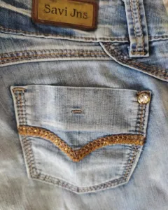 Jeans texano. Jeans me mezclilla strech, detalle de bordado en bolsas traseras, muy cómodo, pequeño detalle a la altura de la rodilla, talla M
