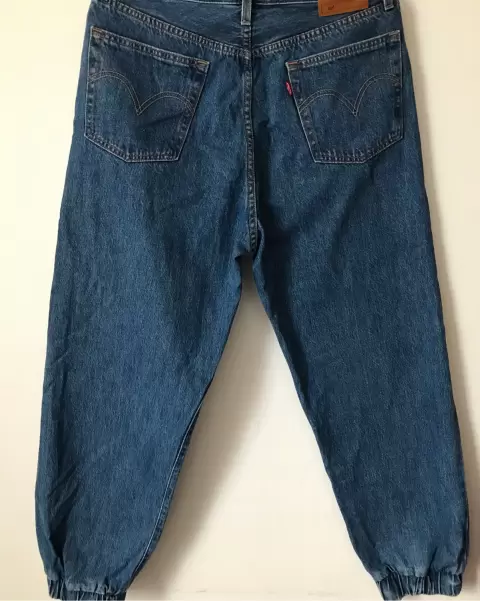 Hermosos jeans Baggy con resorte al final de la pierna, de uso en perfecto estado sin detalles, tienen 2 puestas, traje botones en ves de cierre y una pequeña cinta con la marca en la cintura, horman muy lindo, no te quedes sin ellos