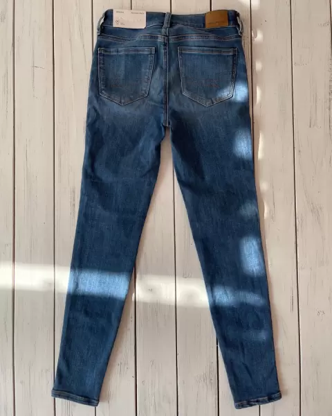 Jeans tipo jegginTalla: 00 shortBrilliant blueMedidas: 30.5 cm cintura, 33 cm de cadera (de costura acostura), 20.5 cm de tiro y 68 cm de entrepierna.Ajuste medio (ni a la cintura, ni a la cadera)Stretch