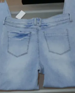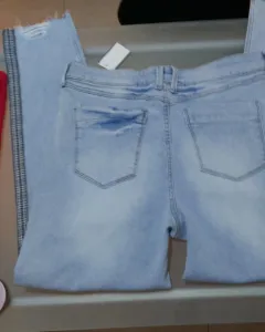 Jeans a la cintura tipo vintage rotos, con línea a los costados nuevo con etiqueta color azul clarito talla 11 strech entubados