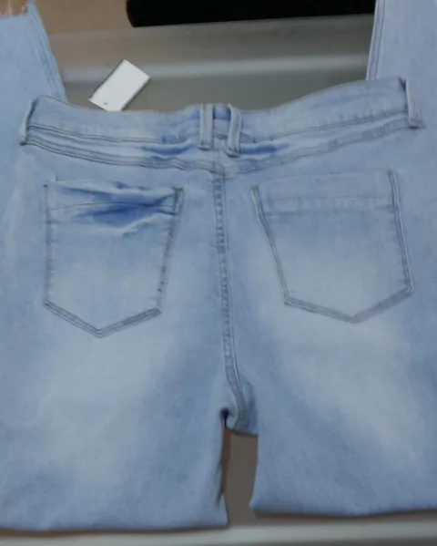 Jeans tipo vintage. Jeans a la cintura tipo vintage rotos, con línea a los costados nuevo con etiqueta color azul clarito talla 11 strech entubados
