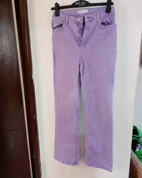 Jeans tiro alto morado, talla 28. Jeans tiro alto bershks, talla 28, en buen estado en la parte de atrás se ve deslavado, ultimo precio.