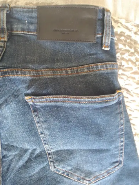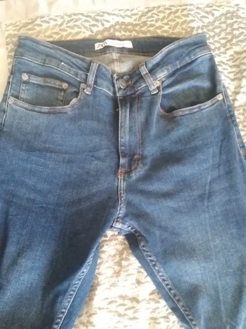 Jeans ZARA STRETCH T- 30. Jeans ZARA DENIM talla 30 con STRETCH es NUEVO, estira bastante, es super cómodo y la mezclilla es suave, amolda la silueta de la cintura, es tiro alto,no tiene ningún detalle;CINTURA: 40 cmCADERA: 47 cmTIRO ALTO: 27 cmLARGO TOTAL: 98 CM