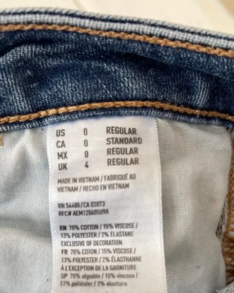Jeggins American Eagle. Talla: 0 REGULAR. Medidas: 30 cm de cintura, 17.5 cm de tiro, 38 cm de cadera y 71.5 cm de entrepierna. Ajuste a la cadera, super stretch.