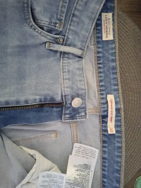Pantalón de mezclilla talla 32 o M, azul con deslavado de detalla, modelo 721 high rise skinny
