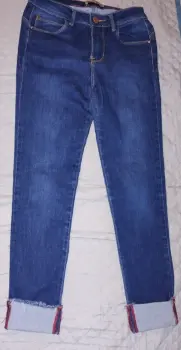 Bonito pantalón de mezclilla.Corte entubado.Talla 5Marca velvettBonito detalle en piernas simulando dobladillo ancho .
