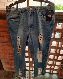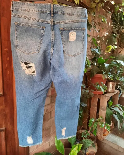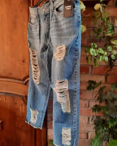 Mom jeans azul , con destrucción.. Bonitos Mom jeans totalmente nuevos con etiqueta, destrucción por la parte delantera y trasera, talla 11 azul claro, perfectas condiciones sin ningun detalle.