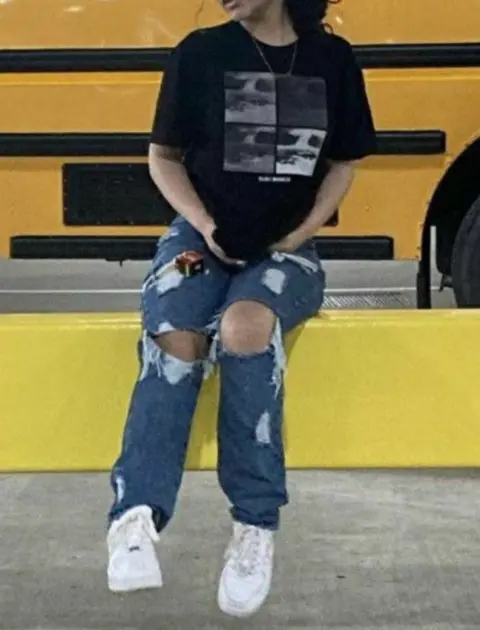 Mom jeans de shein. Color azul mezclilla, rotos talla M, medidas: largo: 102, cintura: 75 cm y muslo: 63.5 cm.