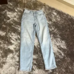 Mom Straight Jeans. Hermosos pantalones en azul claro tipo Mom jeans en corte regular, son talla 2, lisos no tienen detalle estan hermosos ✨tienen poco stresh