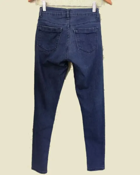 Pantalón de mezclilla, altura a la cadera, entubado, color azul, bolsillos en la parte trasera, bolsillos a los costados. TALLA 3.En perfecto estado, sin detalles.