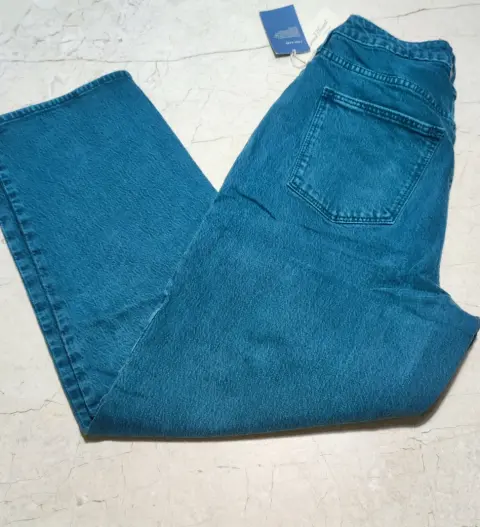 Pantalón color azul vintage tiro alto estilo boy friend moderno y comodo