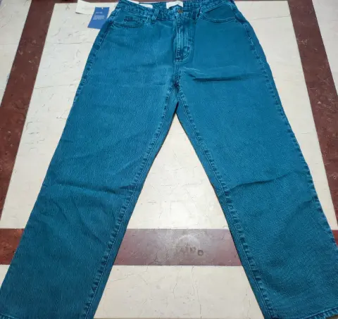 Pantalón azul vintage. Pantalón color azul vintage tiro alto estilo boy friend moderno y comodo