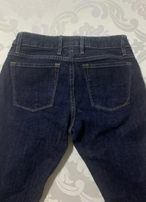 Pantalón de mezclilla corte bota, 4 bolsillos, tiene poco strech.Medidas/ cintura: 33 cm, cadera: 41 cm, tiro: 21 cm, largo: 98 cm.