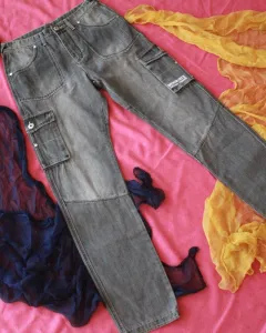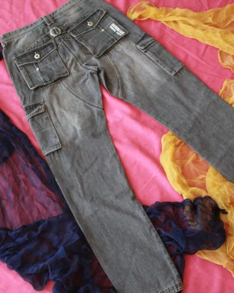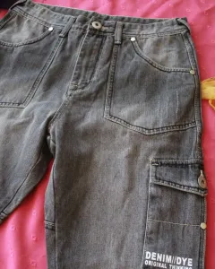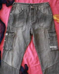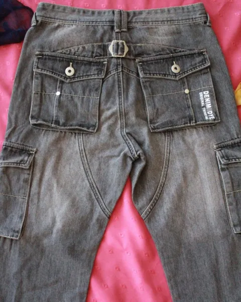 Pantalón corte recto estilo cargo con bolsas a los costados. El pantalón está marcado en talla S, tentativa de talla una 5/7. Tela gruesa y de buena calidad