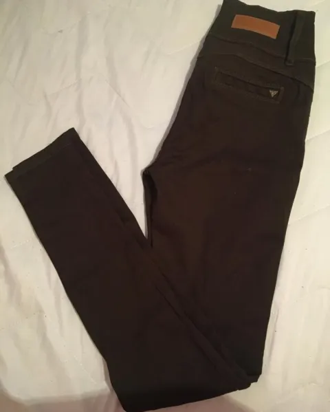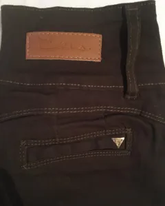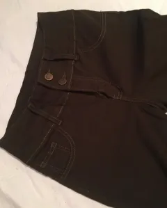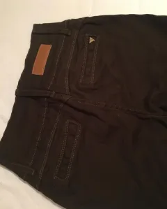 Pantalón de mezclilla café entubado talla 28 con bolsillos aparentes muy chic