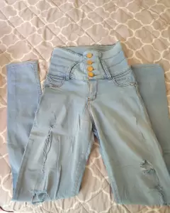 Pantalón de tiro alto, talla 7, stress, entubado, color azul claro