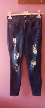 Pantalón de mezclilla.. Pantalón roto de las piernas así es el modelo,y un poco guango, talla chica.