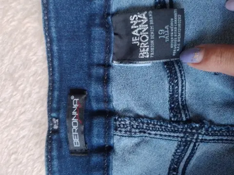 Strech, talla 19 (36-38), color azúl, corte a la cintura, pierna entubado