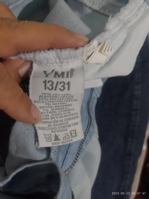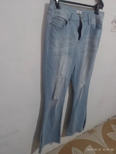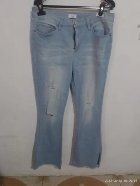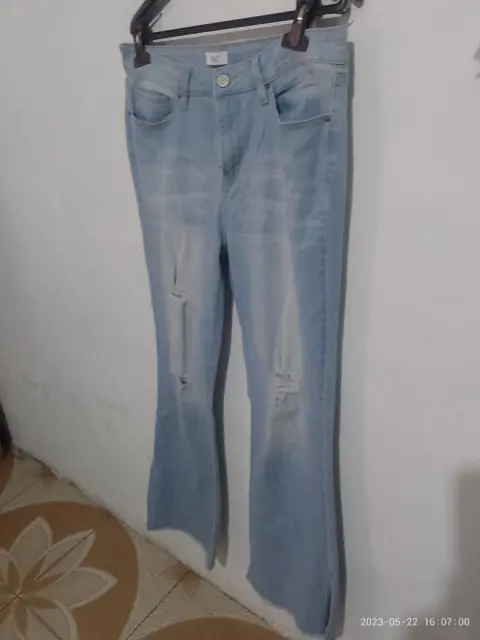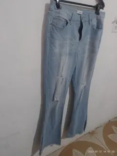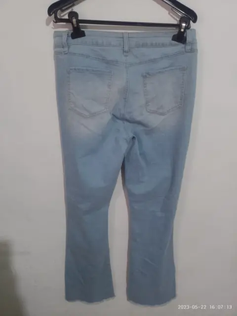 Pantalón de mezclilla claro de avertura en los tobillos es acampando con medidas 38 de cintura ,cadera49 y largo 109cm