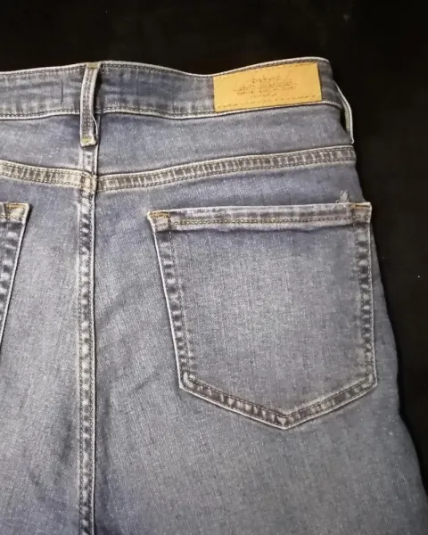 Pantalon de mezclilla skinny color azul, tiro alto, arriba del ombligo, talla 7, en la ultima imagen vienen las medidas tal cual de C&A.
