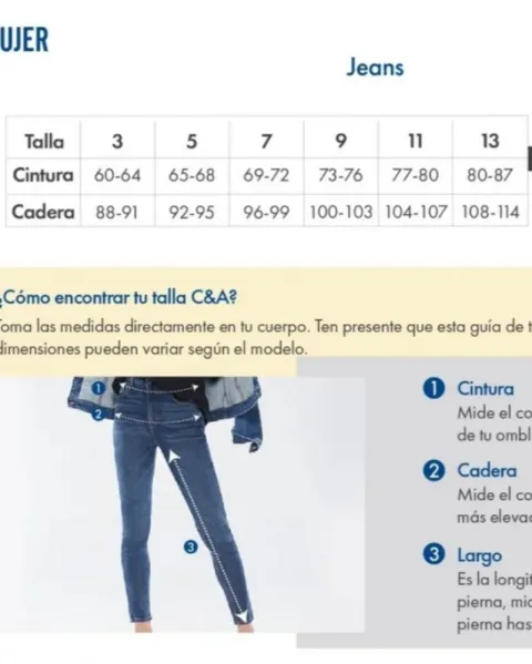 Pantalón de mezclilla C&A. Pantalon de mezclilla skinny color azul, tiro alto, arriba del ombligo, talla 7, en la ultima imagen vienen las medidas tal cual de C&A.