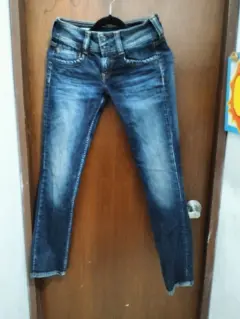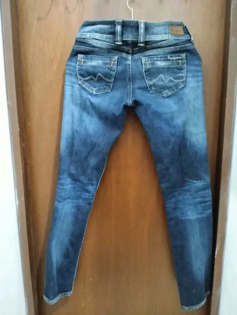 Pantalon de mezclilla de Pepe Jeans. Pantalón de Mezclilla Pepe Jeans, talla cintura 27 largo 32 azul obscuro con pequeños destellos de deslavados, pretina ancha
