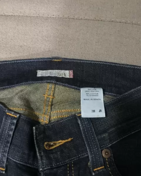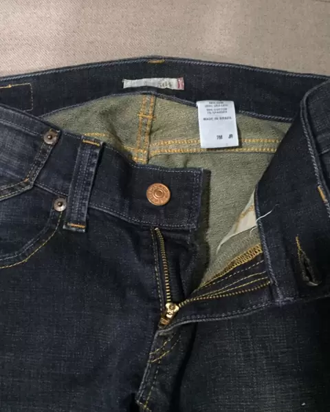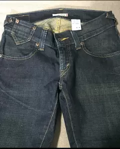 Pantalón Levis de mezclilla talla 7, corte a la cadera que resalta la pompis, pierna pegada y pata un poco ancha.