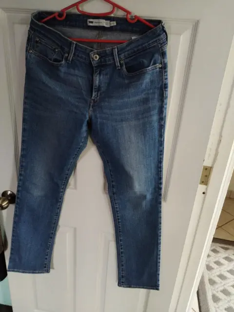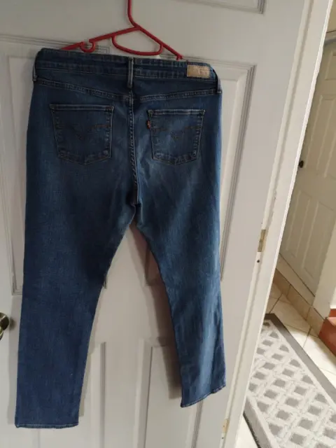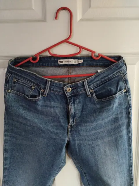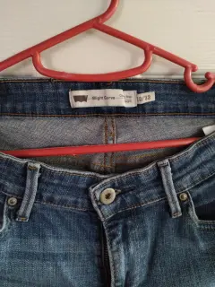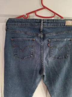 Pantalón de mezclilla Levis. Pantalón de mezclilla azul, corte a la cintura, pierna recta, con bolsas atrás y adelante, talla 32 slight curve, estreigs, en muy buen estado