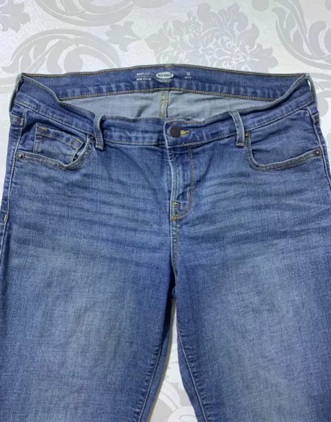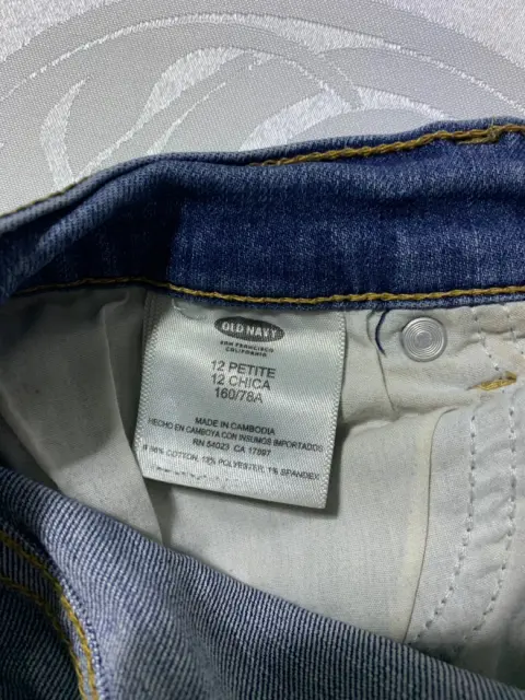 Pantalón de mezclilla Old Navy. Pantalón de mezclilla con strech, corte bota petite.Medidas/ cintura: 41 cm, cadera: 49 cm, tiro: 25 cm, largo: 98 cm.