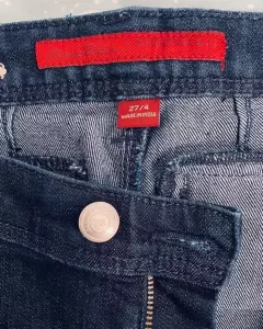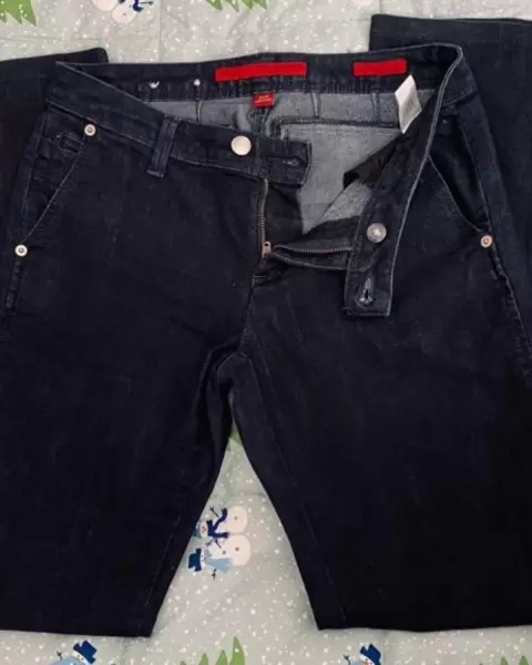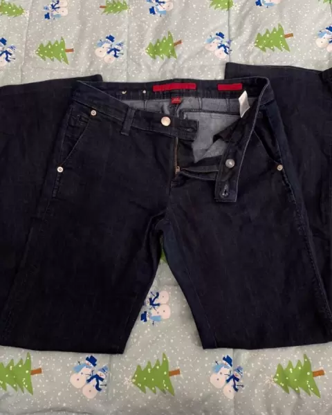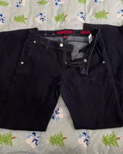 Pantalón de mezclilla oscuro. Azul marino, es recto y a la cadera. Enmarca muy lindo el trasero, es ajustable y queda muy lindo.