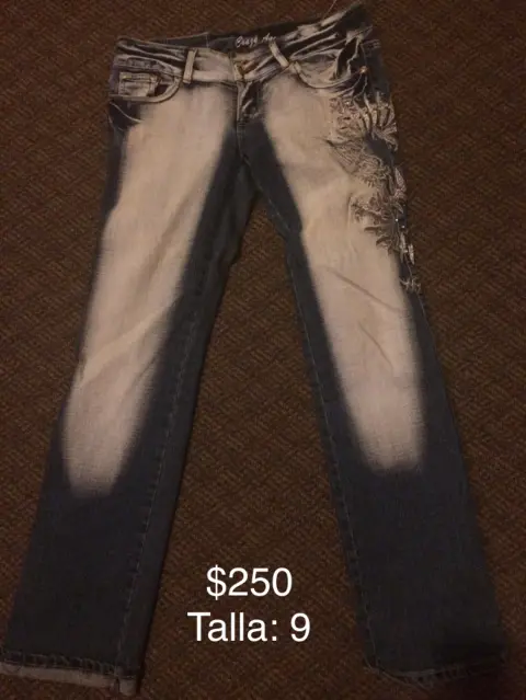 Pantalón de mezclilla con un adorno bordado del lado izquierdo, por ambos lados está deslavado como adoro , está nuevo solo que no tiene etiqueta, talla 9 marca crazy age
