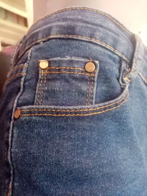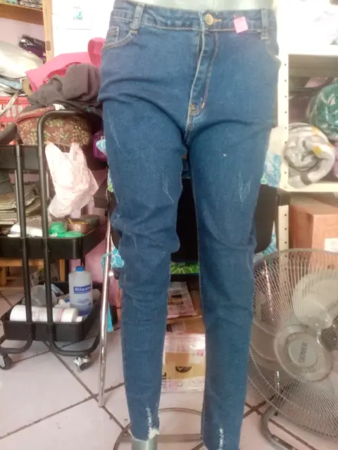 Pantalón de mezclilla strech. Talla- XL Shein MujerColor:Azul mezclilla
