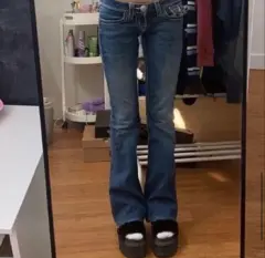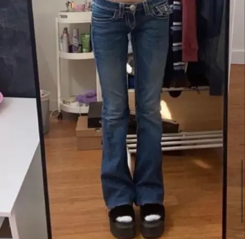 Pantalón de mezclilla TRUE RELIGION color azul con costuras naranjas, a la cadera (ver foto )sin detalles,listo para estrenar, talla 26 MEDIDAS APROX. CADERA 40 cms LARGO 94 cms