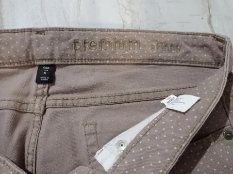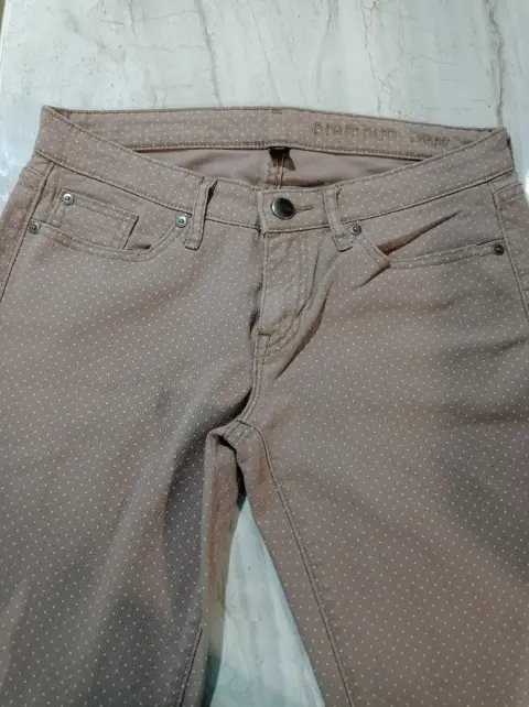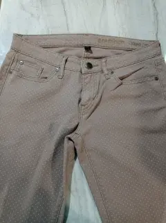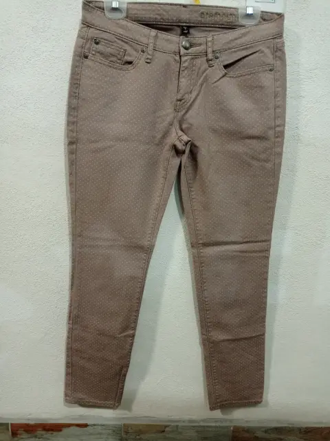 Bonito pantalón Gap color café con lunares beige, sin detalles, tela suave y cómoda, tiene strech, ajusta muy bien. Solo un par de piestas. Talla 6. Medidas en plano:Cintura 40 cmLargo 98 cm