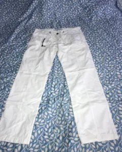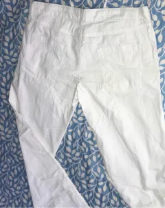 Pantalón blanco, recto, esta nuevo sin etiquetas no tiene ningún detalle, es de tela fresca y algo delgada marca goga, talla 11(L)